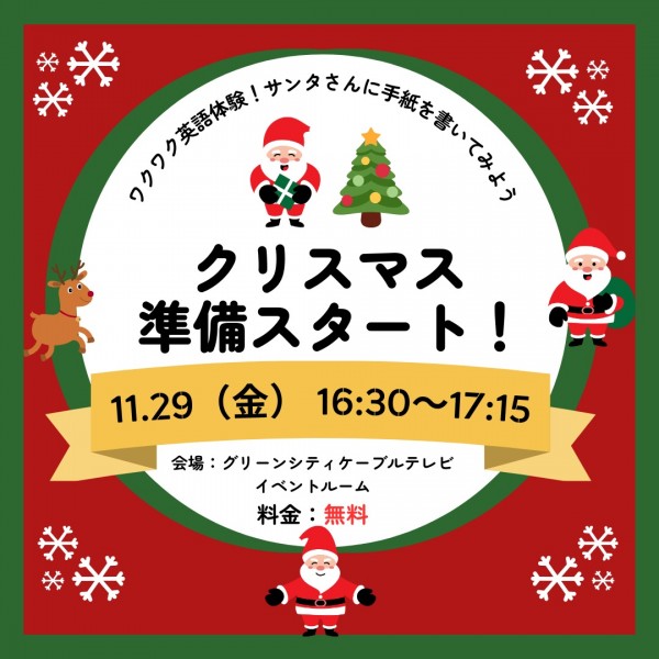 10月ハロウィーンイベントに続き第二弾🍂11月のイベントのお知らせです🍂クリスマス1ヶ月前イベント決定!ワクワク英語体験!サンタさんへ手紙を書こう🎄■日時:11月29日(金)16:30~17:15■場所:尾張旭駅すぐグリーンシティケーブルテレビイベントスペース■対象:年中~小学生のお子様■料金:無料■内容:お手紙を書こう!ライモーフォニックスのゲーム今回はSmile Gardenの生徒さんは基本的にはお子様のみの参加、それ以外のお友達は、保護者の方とご参加ください😊皆様とお会いできるのを楽しみにしております🎅お問い合わせは、公式LINEから❣️